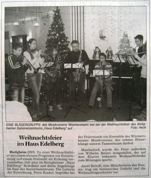 Ensembleauftritt im Haus Edelberg am 21.12.2006