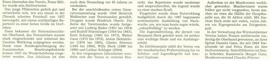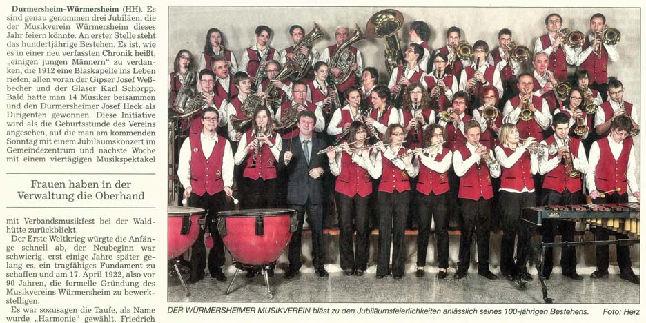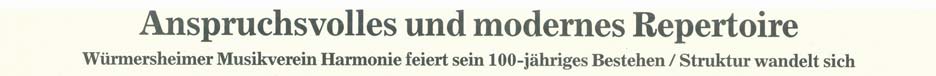 Zeitungsartikel zum 100jährigen Bestehen des Musikvereins Würmersheim