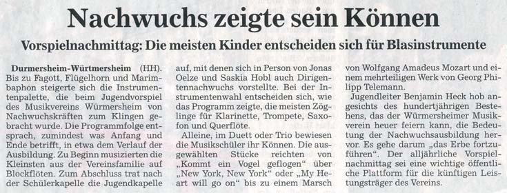 Am letzten Sonntag im März fand der Vorspielnachmittag 2012 der Musikerjugend unseres Vereins statt. Trotz des schönen Wetters kamen viele interessierte Zuhörer, denen ein abwechslungsreiches Musikprogramm geboten wurde.